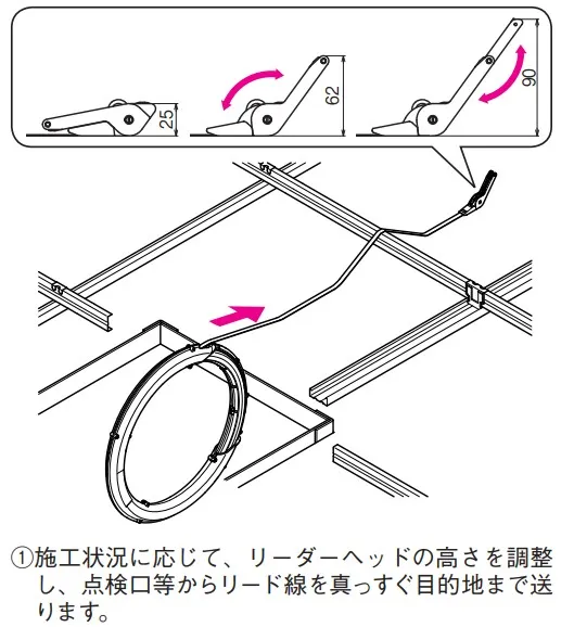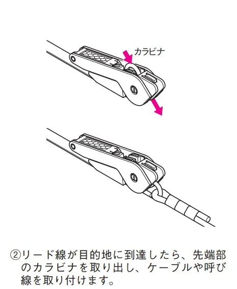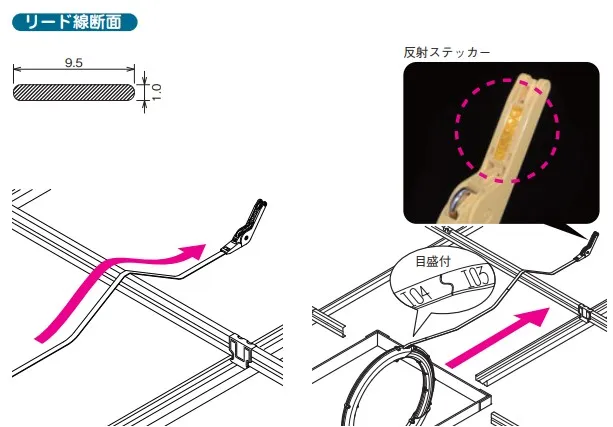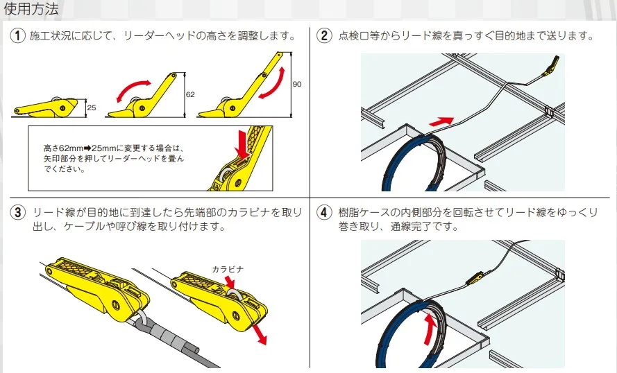 ● リード線には50cm置きに目盛りがついておりますので、障害物に当たって進まない場合には、その箇所が容易に確認できます。