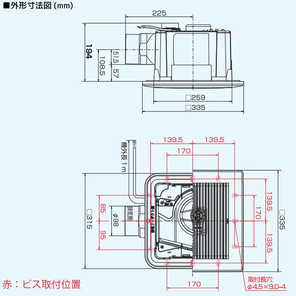 高須産業 天井用換気扇 1室換気 標準タイプ TK-265R1L 24時間換気対応
