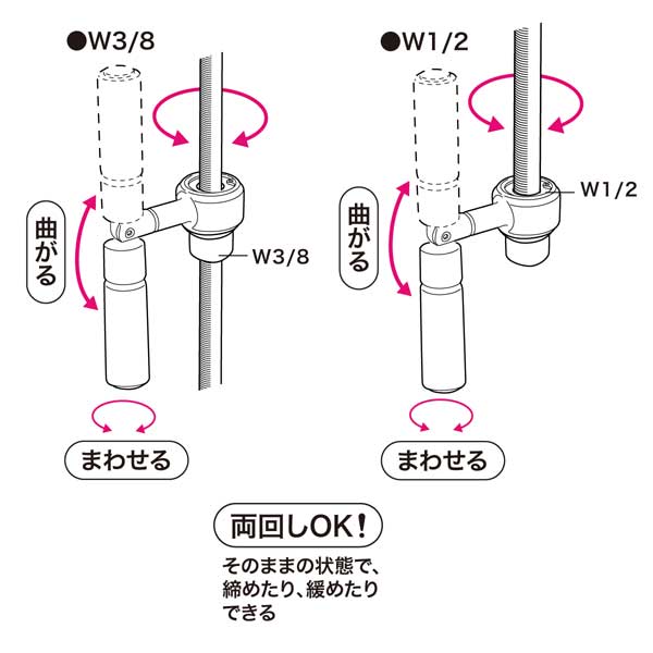 - W3/8,W1/2兼用レンチ(W1/2は全ネジ貫通不可)