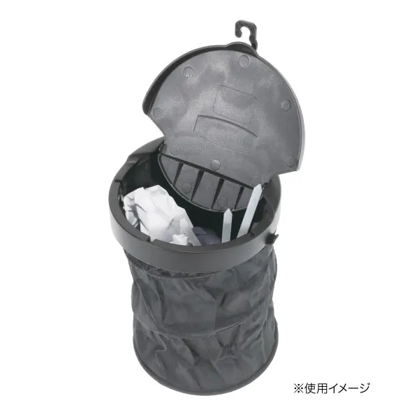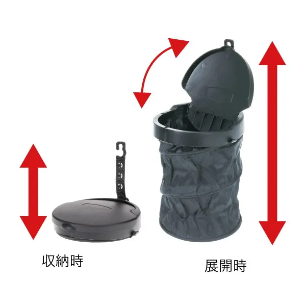 携帯用軽量びっくりバケツ ●スプリング内蔵でパッと開く ●コンパクト収納 ●部材収納やゴミ入れに便利 ●フック付