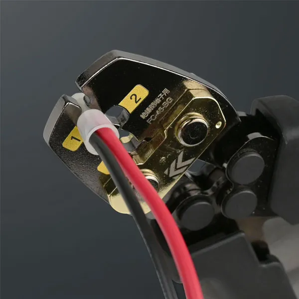 ダイスの圧着面積を最小限に抑えることで、力を一点に集中させ、 軽い力でも確実に端子を圧着できる設計となっています。 これにより、連続作業やサイズの大きい端子など、力を要する圧着作業 でも手への負担を大幅に軽減。作業者の疲労を軽減し、長時間の使用でも快適に作業を続けられるため、作業性を大きく向上させることができます。