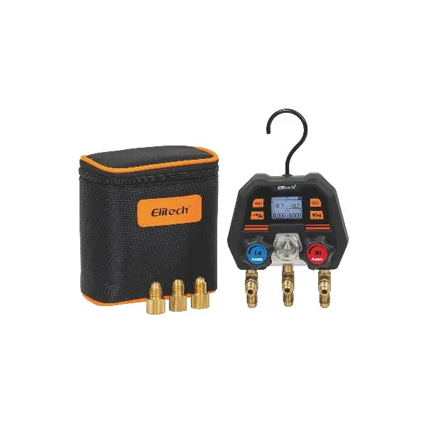 ロギングやレポートの作成も可能で、アプリは日本語に対応しています。(iOS・Android対応)対応冷媒 初期設定:R11、R12、R13、R22、R290、R32、134a、R404A、R410A、R407C、R408A、R409A、 R458A、R448A、R449A、R500、R502、R600 その他冷媒:約140種の冷媒を専用アプリから入れ替え追加が出来ます ※アップデートにより順次追加されることがあります。 ※R407H、R463A、R463A-J、R513Aが新しく追加されました。 圧力測定範囲 ?0.1~5.5MPa ポート径 1/4"・1/4"・1/4" 精度 ±0.5%FS 質量 680g 電源 1.5V 単4電池×2本(電池寿命:約200時間) 使用温度 ?10~50°C 保護等級 IP54 標準付属品 異径アダプタ1/4"×5/16"(メス×オス)×3個、収納バッグ、1.5V単四電池(テスト用)×2個