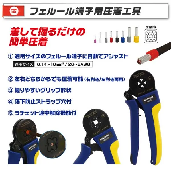 適用サイズ:0.14~10mm2/26~8AWG
